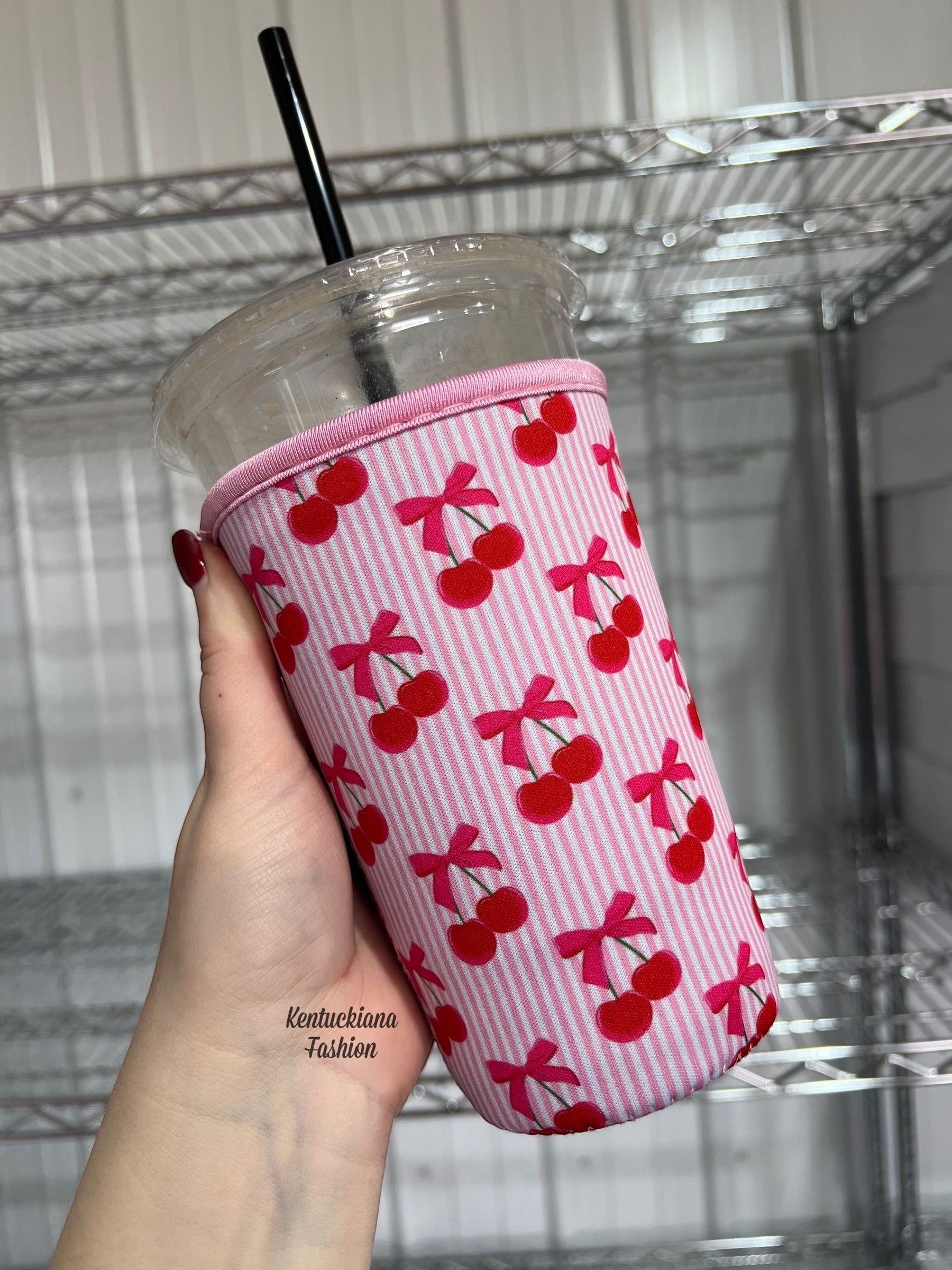 Stripes & cherries coffee koozie